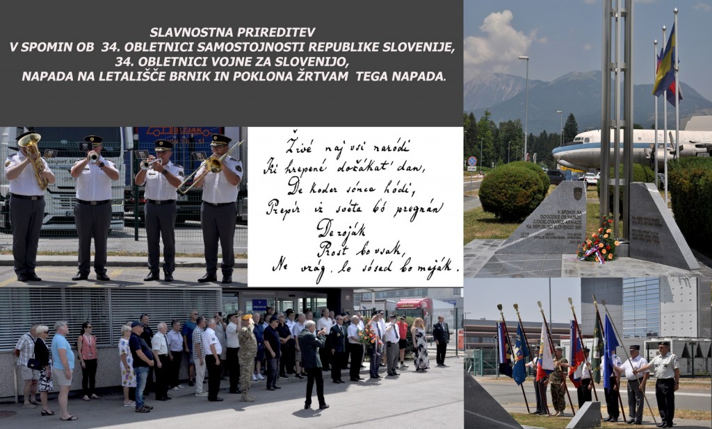 V četrtek, dne 26. 6. 2025 ob 13. uri je bila v organizaciji Policijskega veteranskega društva Sever – Gorenjska (društvo) in sodelovanju: Območnega združenja veteranov vojne za Slovenijo (OZVVS) Kranj, občine Cerklje na Gorenjskem in podjetja Fraport Slovenija, d. o. o, ob spominskem obeležju pred objektom Postaje letališke policije (PLP) Brnik na letališču Jožeta Pučnika – Ljubljana, organizirana in izvedena spominska slovesnost ob 34. obletnici vojne za Slovenijo in samostojnosti R. Slovenije, katere se je udeležilo 76 oseb.